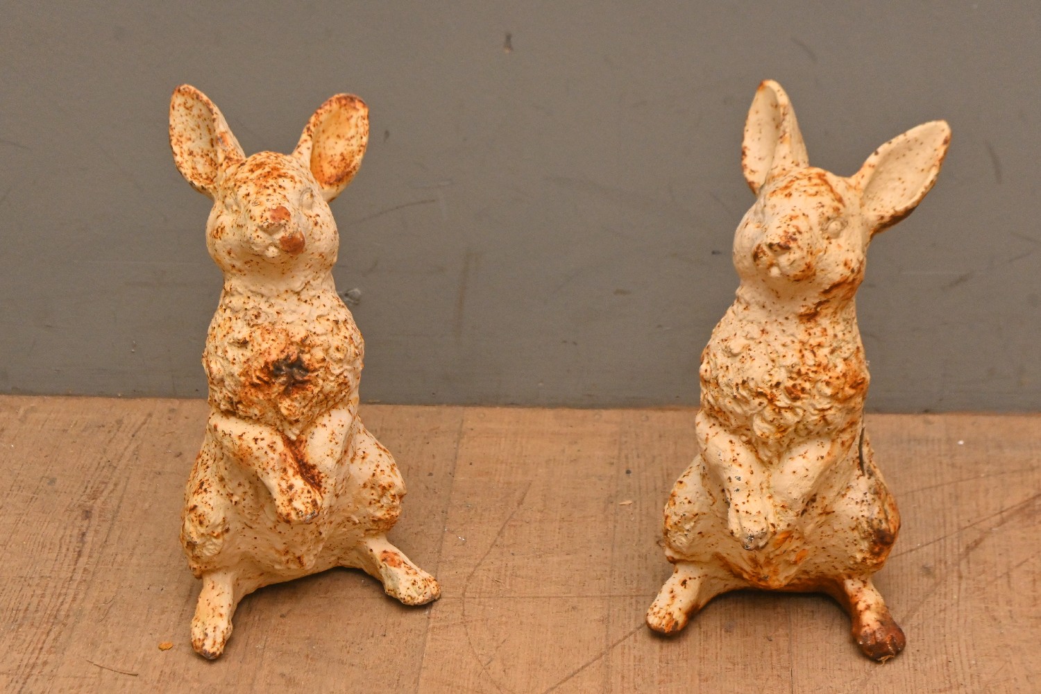 A PAIR OF CAST IRON RABBITS (32H CM) (LEONARD JOEL DELIVERY SIZE: LARGE)