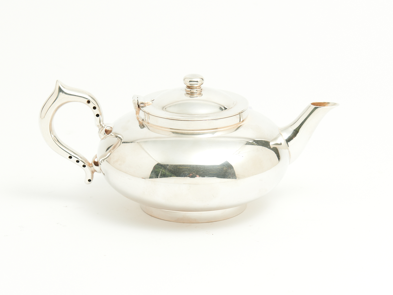 A ROBUR SILVER PLATE FOUR CUP TEAPOT WITH ORIGINAL INFUSER L.21.5CM, LEONARD JOEL DELIVERY SIZE: SMALL