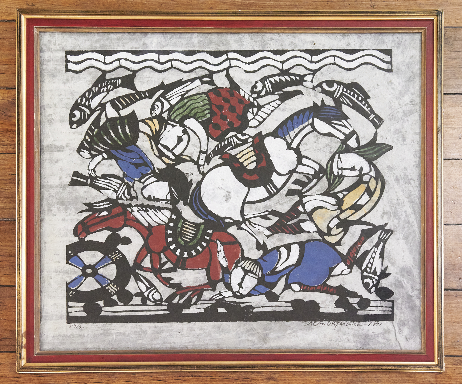 A SADAO WATANABE 'EGYPTIANS' DESTRUCTION IN THE RED SEA', 1971, WOODCUT IN COLORS, SIGNED IN INK, DATED AND NUMBERED 57/70, 60 X 70CM, LEONARD JOEL DELIVERY SIZE: MEDIUM