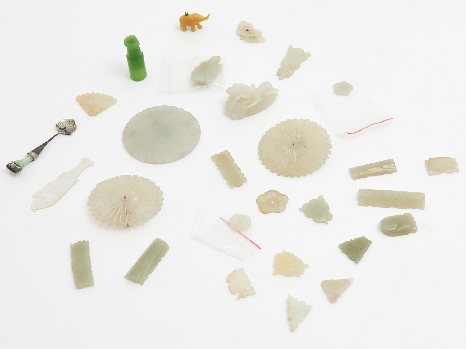 A COLLECTION OF SMALL CHINESE JADES DIA.5.5CM (LARGEST), LEONARD JOEL DELIVERY SIZE: SMALL