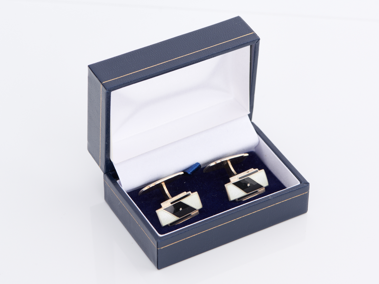 A PAIR OF VINTAGE NORWEIGAN ENAMELLED SILVER GILT CUFFLINKS, BOXED
