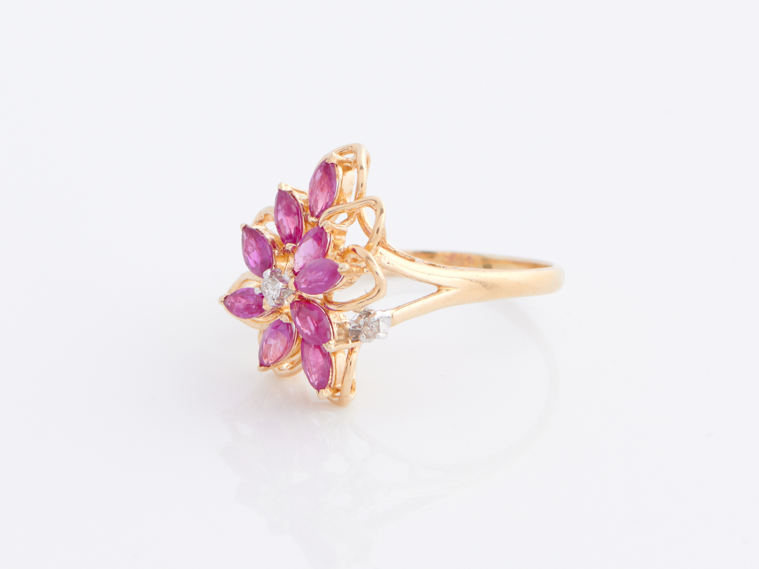A RUBY AND DIAMOND RING IN 14CT GOLD, SIZE N1/2, 3.1GMS
