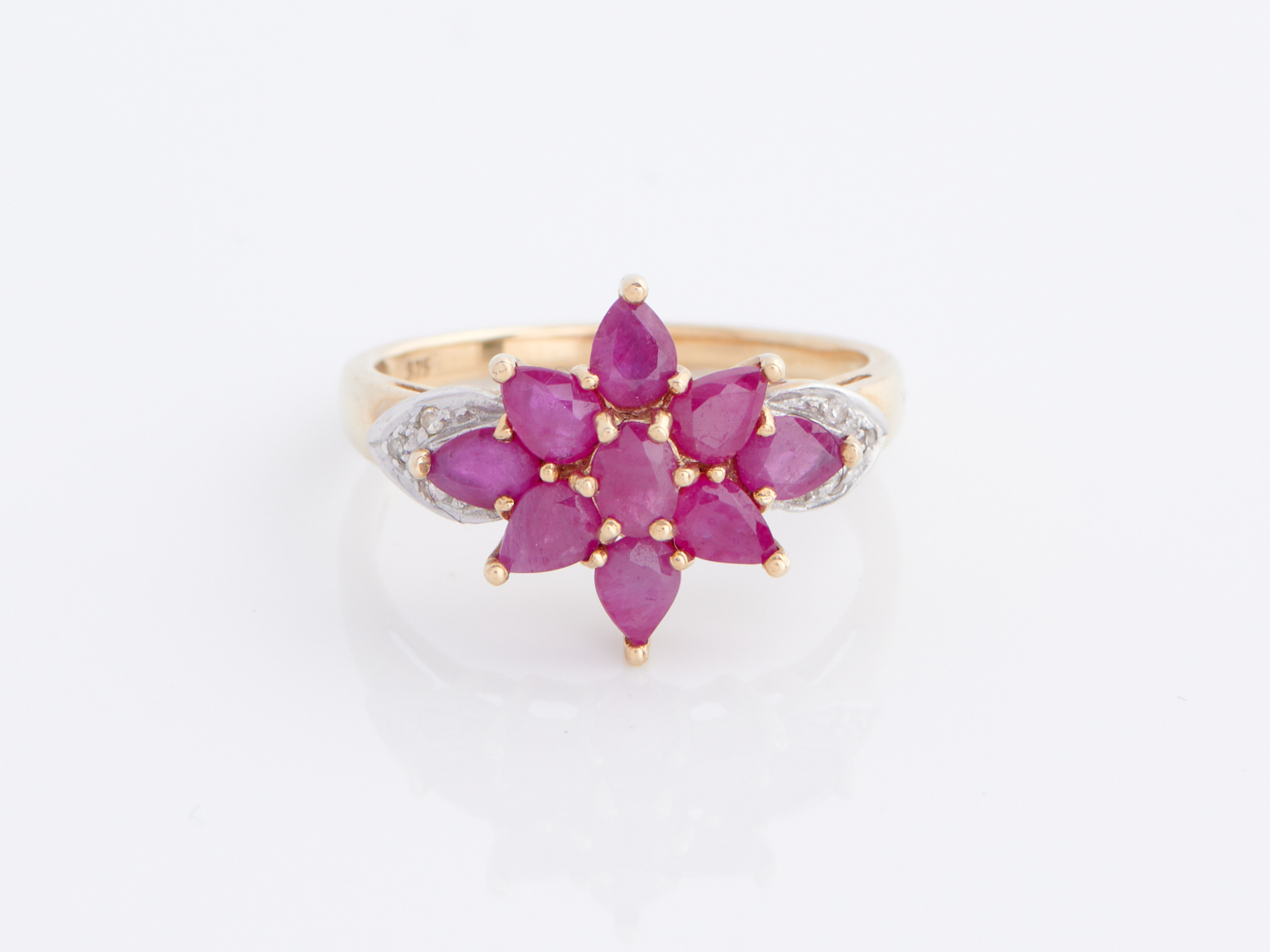 A RUBY CLUSTER RING IN 9CT GOLD, SIZE M, 2.3GMS
