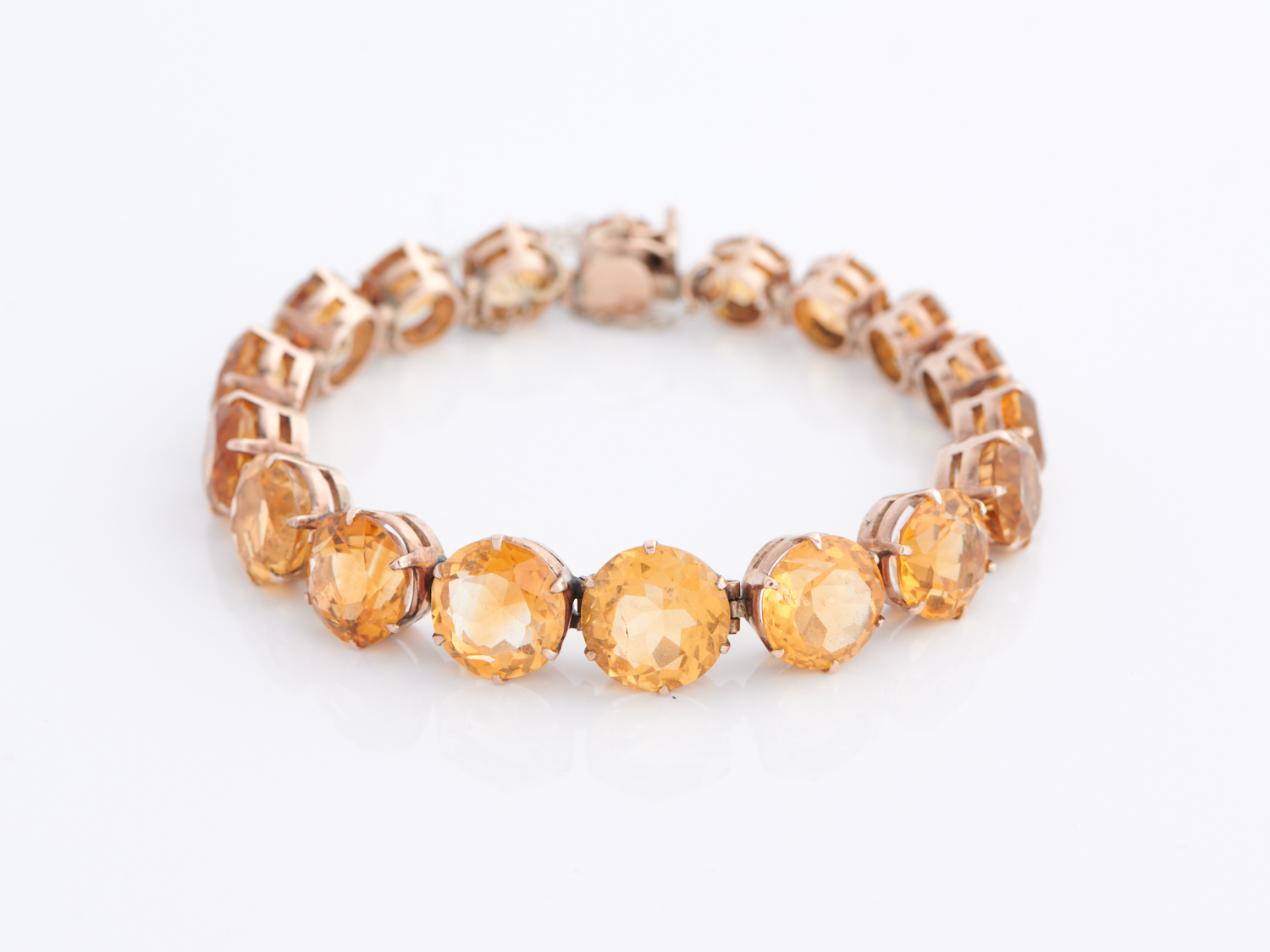 AN ANTIQUE CITRINE BRACELET IN 9CT GOLD, APPOXIMATELY 170MM
