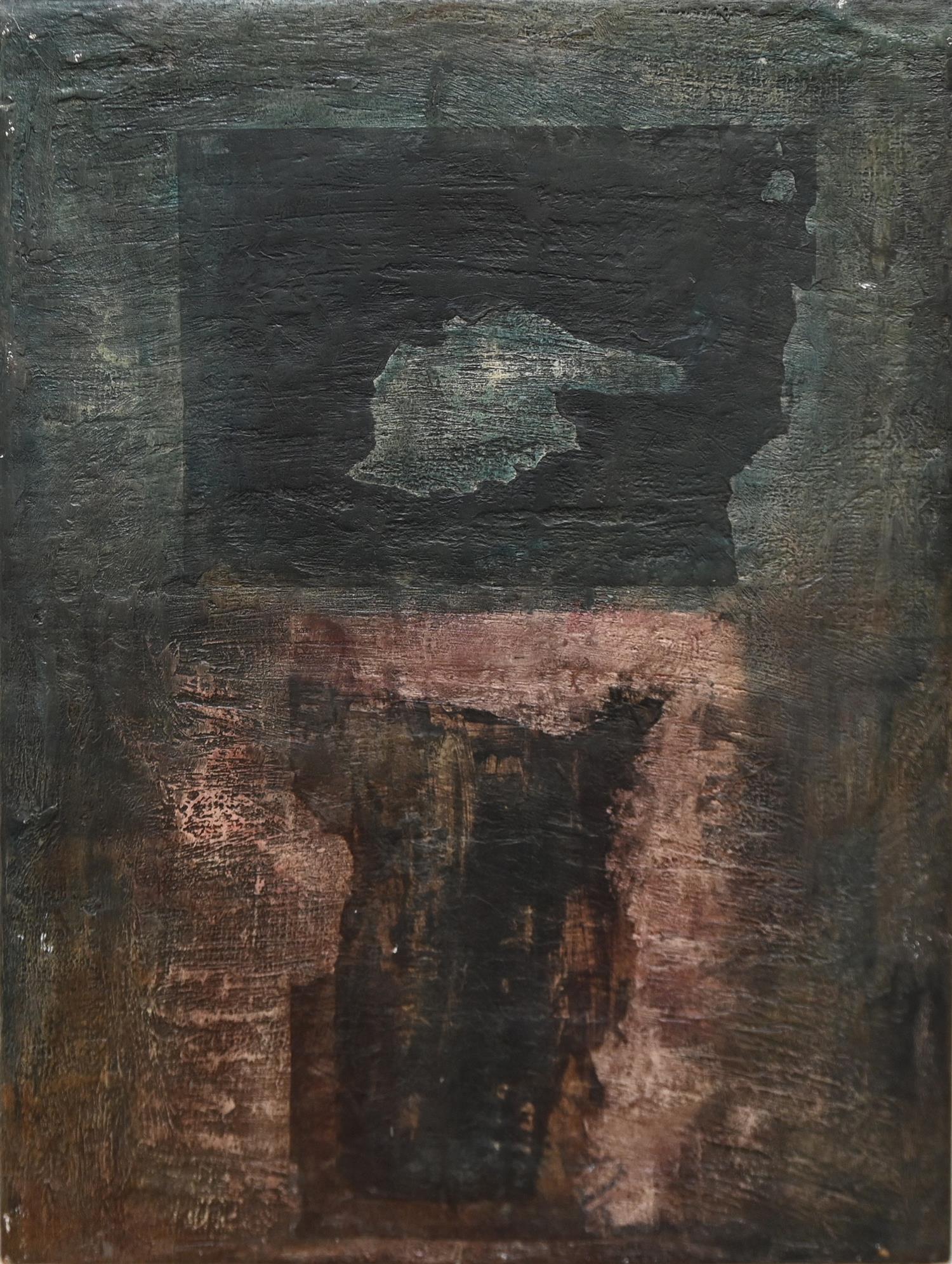 RICHARD WARD, A FRAGMENT 1986, MIXED MEDIA ON HESSIAN ON BOARD, SIGNED VERSO, 67 X 50.5CM