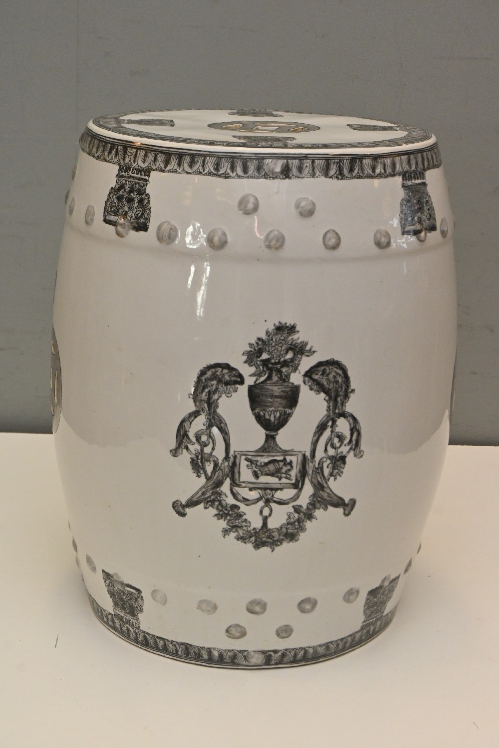 A CHINESE PAINTED DRUM STOOL (46H X 37D CM) (LEONARD JOEL DELIVERY SIZE: LARGE)