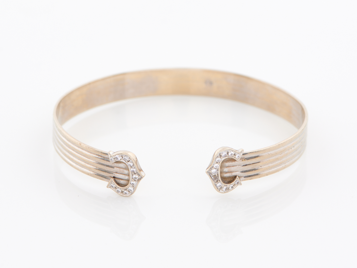 A DIAMOND SET BANGLE IN 18CT WHITE GOLD, INNER MEASUREMENT APPOXIMATELY 65MM, 23.4GMS