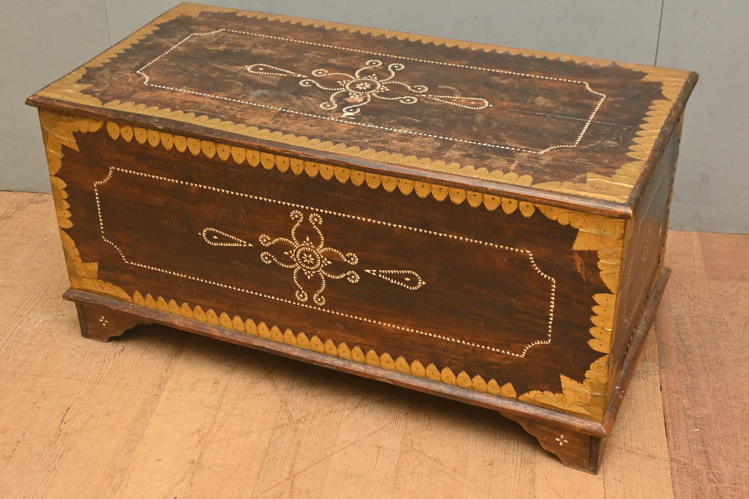 A DECORATIVE CHEST WITH BRASS & MOTHER OF PEARL INLAY (A/F) (50H X 100W X 50D CM) (LEONARD JOEL DELIVERY SIZE: X-LARGE)