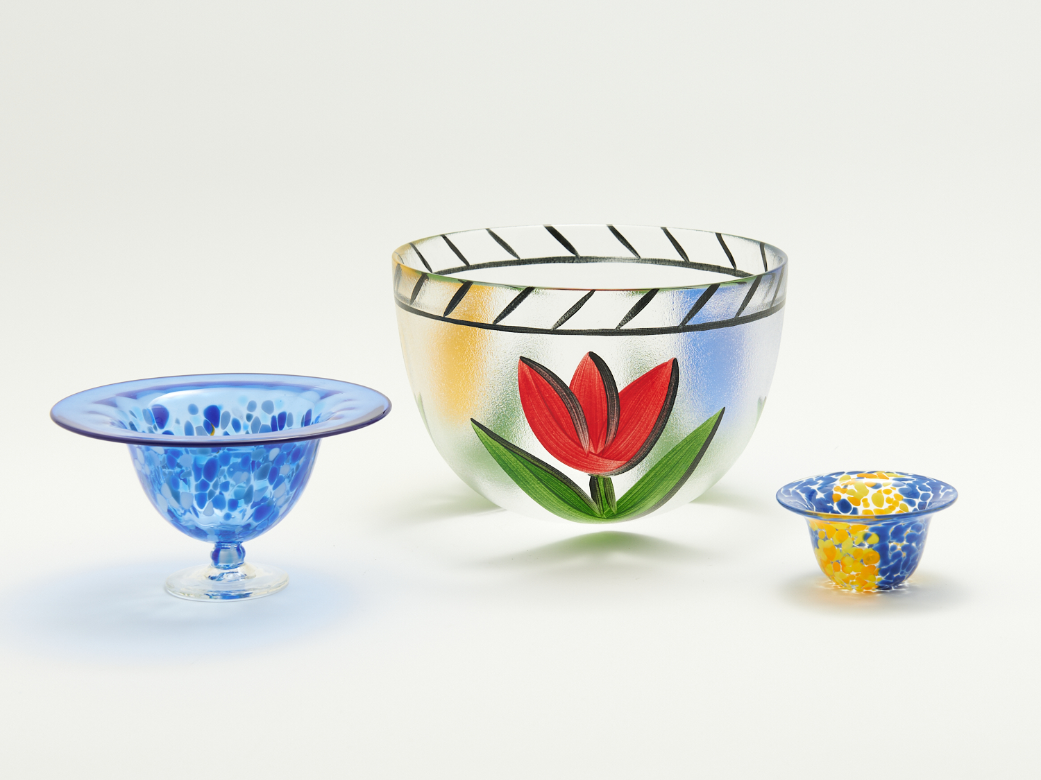 A GLASS BOWL BY ULRICA HYDEMAN VALLIEN AND TWO OTHERS, ONE OF THE OTHERS SIGNED DIA.22CM (LARGEST), LEONARD JOEL DELIVERY SIZE: MEDIUM