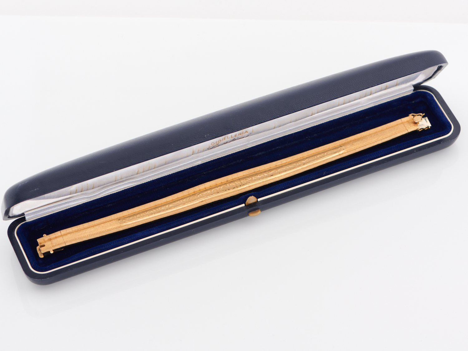 AN ARTICULATED BRACELET IN 18CT GOLD, 200MM, 42.3GMS