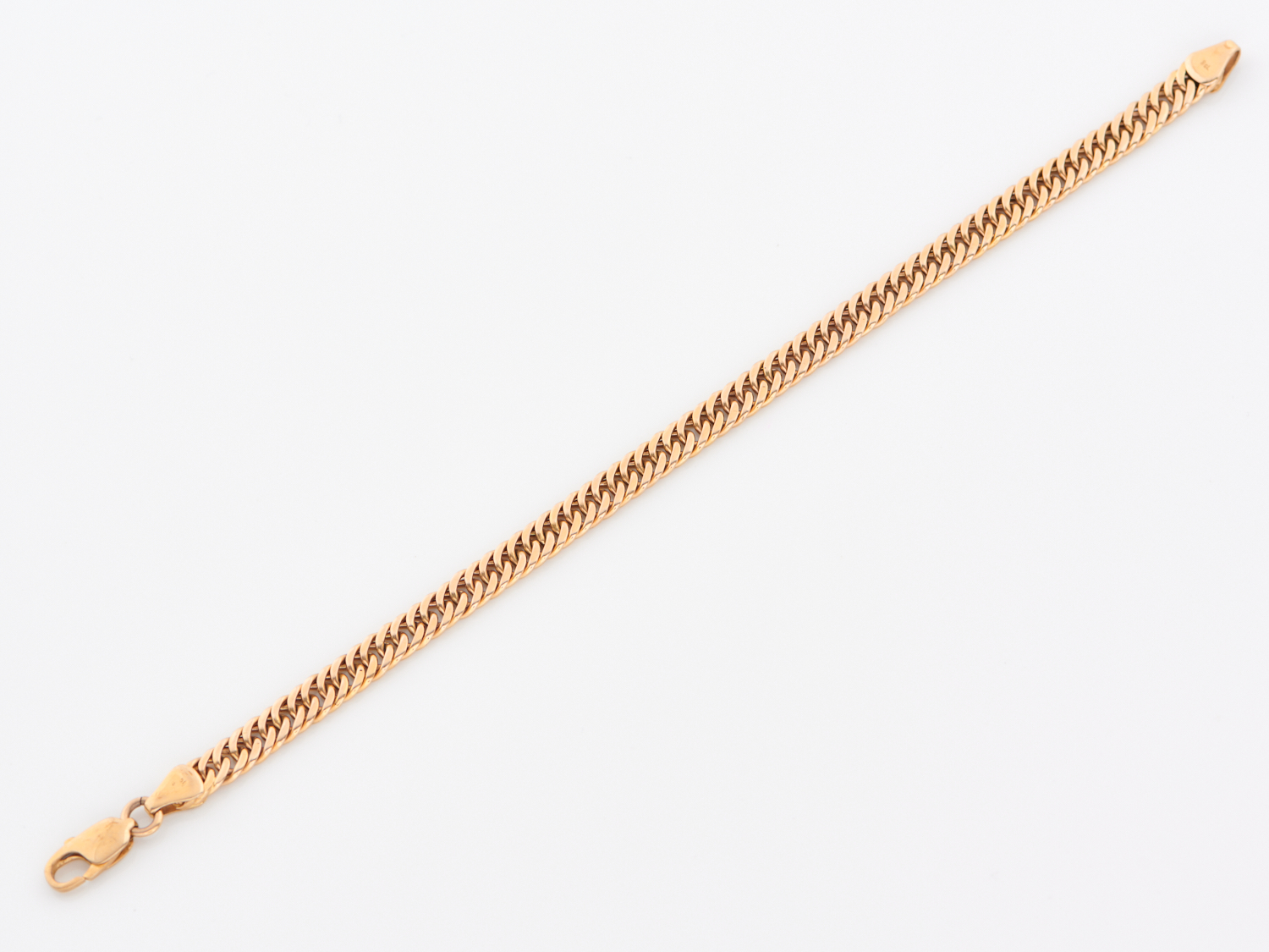 A FLAT CURB LINK BRACELET IN 9CT GOLD, 215MM, 20.3GMS