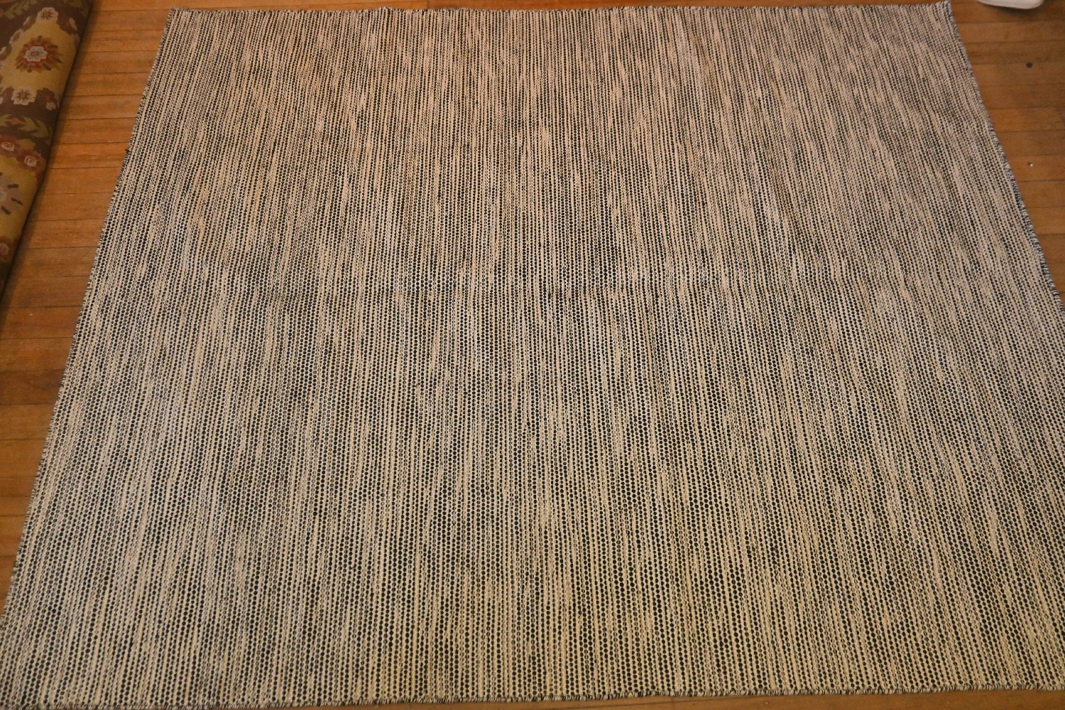 MODERN SCANDINAVIAN REVERSABLE FLAT WEAVE. 100% WOOL – HANDWOVEN. IN IVORY AND CHARCOAL TONES. SIZE: 244 X 305 CM ORIGIN: INDIA – RRP: $1,100