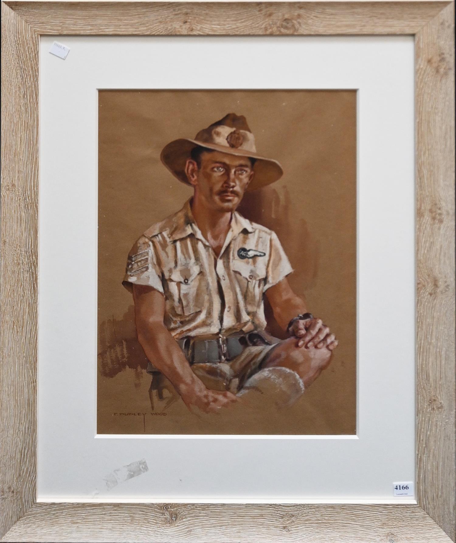 CLIFFORD DUDLEY WOOD, PORTRAIT OF AN AUSTRALIAN TROOPER, GOUACHE ON PAPER, SIGNED LOWER LEFT, 46 X 33CM, FRAME SIZE: 72 X 58CM
