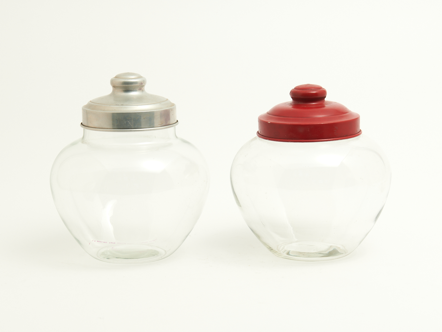 A PAIR OF VINTAGE ALUMINIUM AND ANODISED LIDDED GLASS SHOP DISPLAY LOLLY JARS H.23CM LEONARD JOEL LOCAL DELIVERY: SMALL