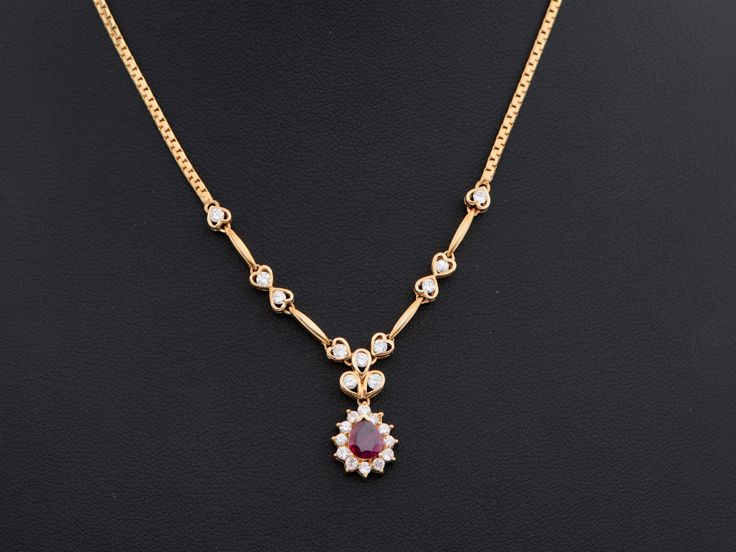 A RUBY AND DIAMOND NECKLACE IN 18CT GOLD, APPOXIMATELY 410MM, 10.7GMS