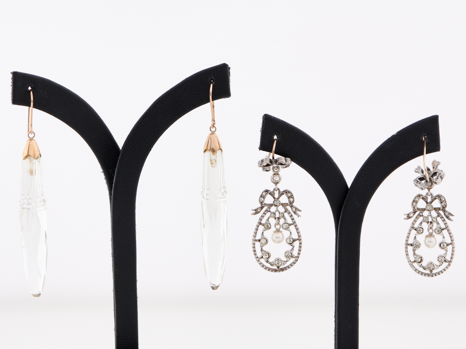 A PAIR OF FACETED PASTE EARRINGS MOUNTED IN 9CT GOLD TOGETHER WITH A PAIR OF GEM-SET BELLE EPOQUE EARRINGS IN SILVER
