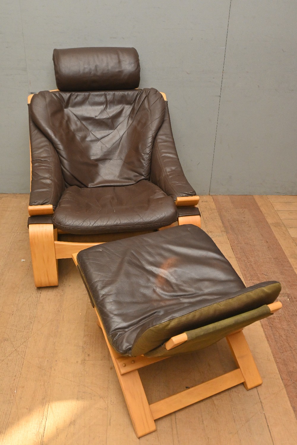 AKE FRIBYTTER FOR NELO BLONDEWOOD LOUNGE CHAIR & OTTOMAN (A/F) (91H X 77W X 95D CM) (LEONARD JOEL DELIVERY SIZE: X-LARGE)