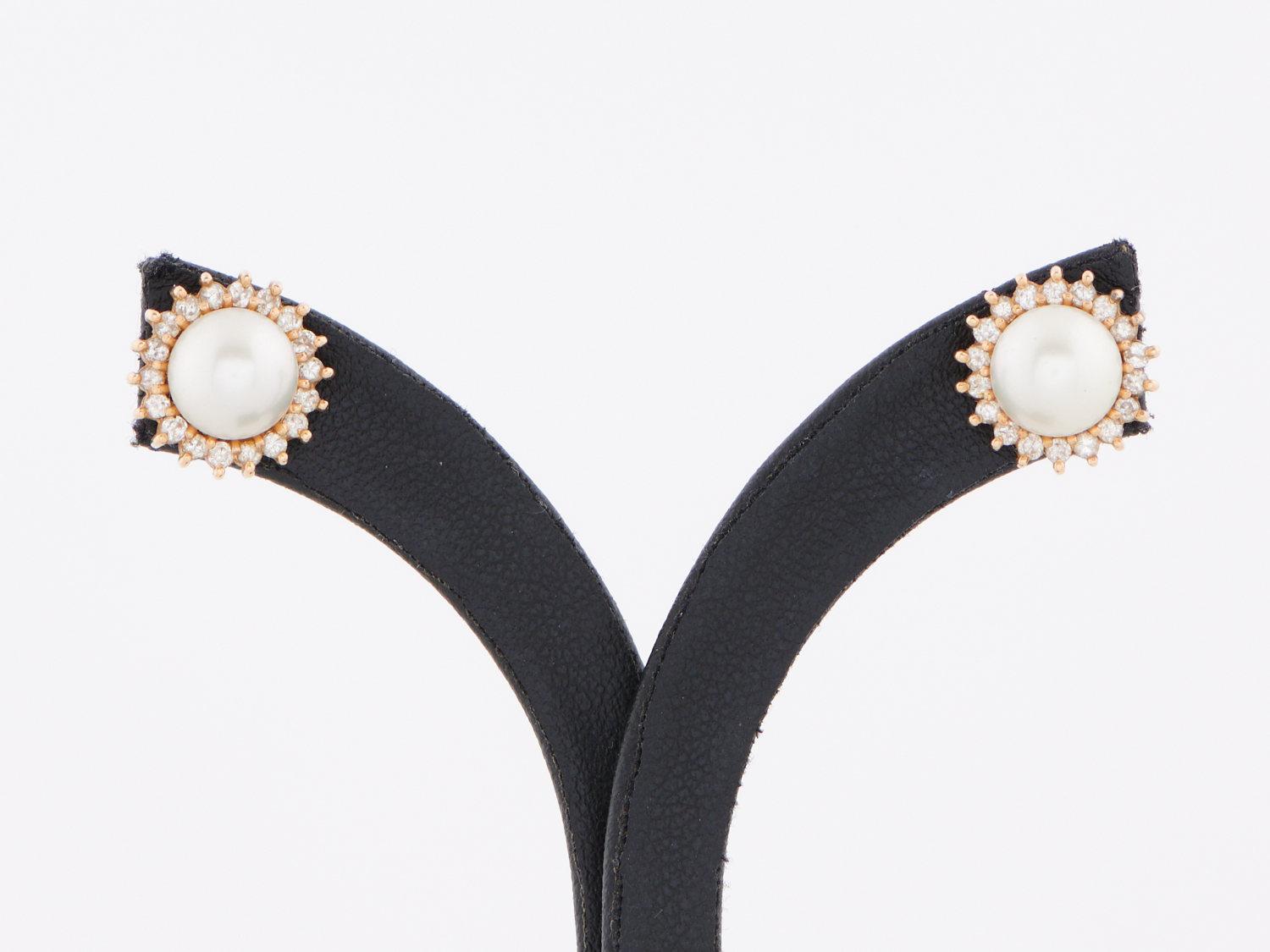 A PAIR OF MABE PEARL AND DIAMOND EARRINGS IN 14CT GOLD, TO POST AND BUTTERFLY FITTINGS