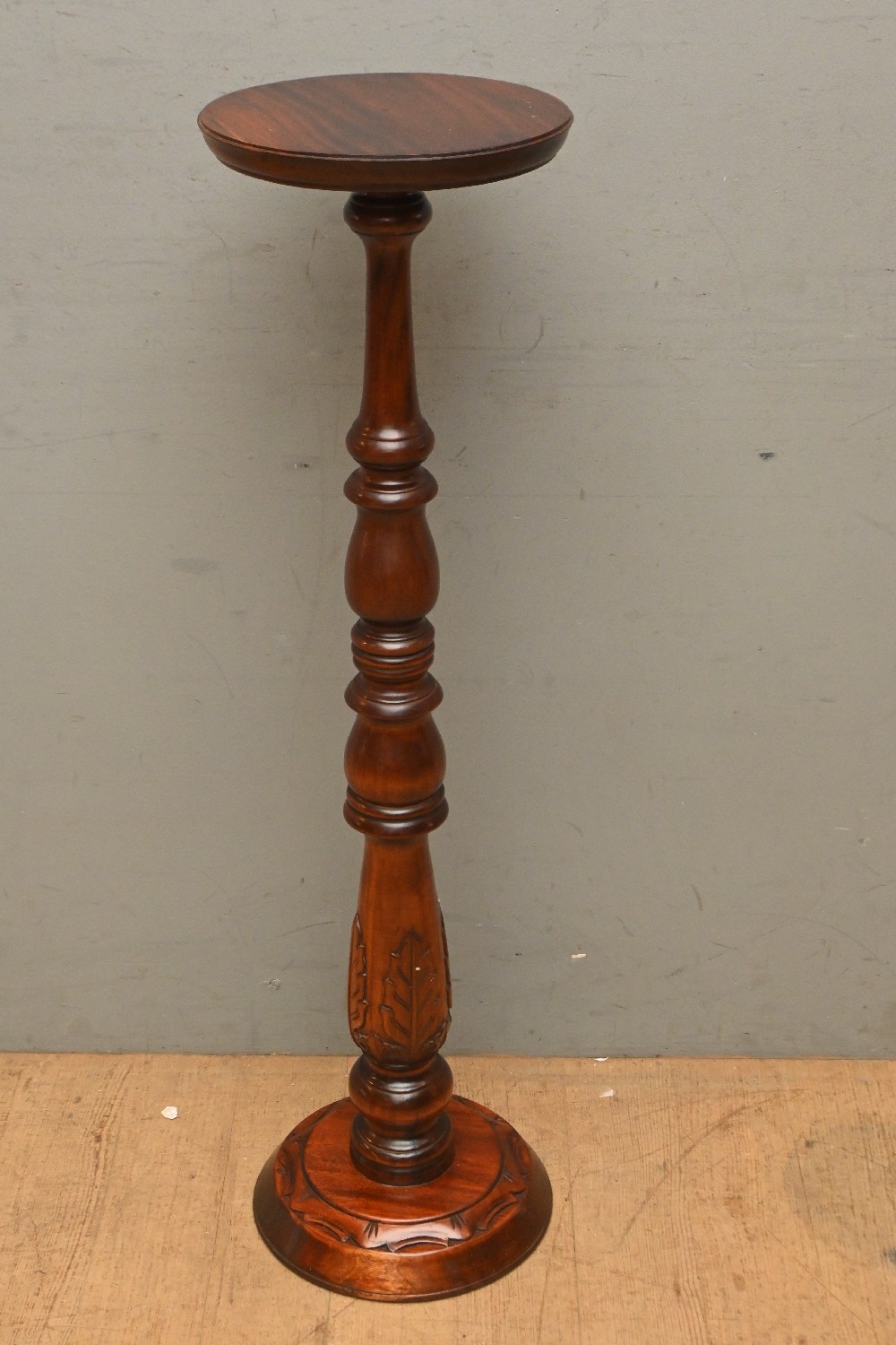 A SOLID MAHOGANY CARVED BASED PEDESTAL (98H X 27D CM) (LEONARD JOEL DELIVERY SIZE: LARGE)