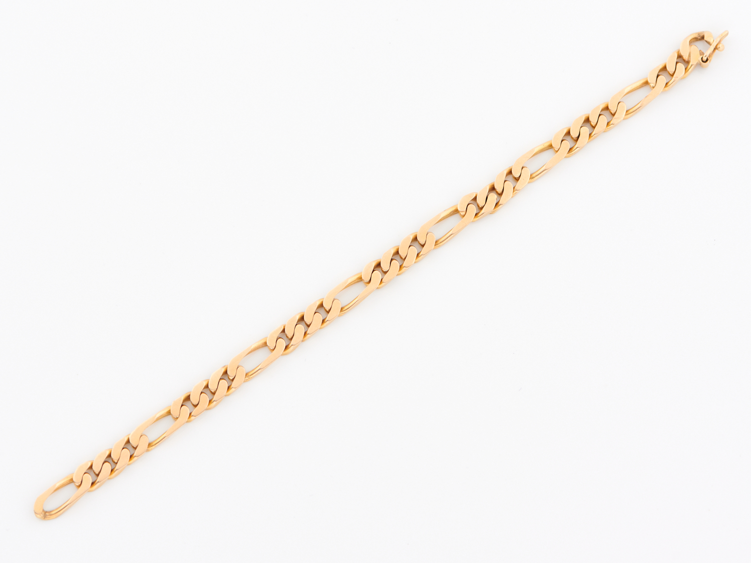 A FIGARO CHAIN BRACELET IN 18CT GOLD, 200MM, 27GMS