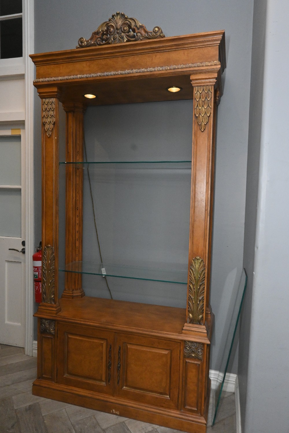 A CLASSICAL STYLE BOOKCASE/DISPLAY STAND (258H X 125W X 48D CM) (A/F) (PLEASE NOTE THIS HEAVY ITEM MUST BE REMOVED BY CARRIERS AT THE CUSTOMER'S EXPENSE. LEONARD JOEL STAFF CANNOT ASSIST CARRYING THIS ITEM) (LARGE ITEM)
