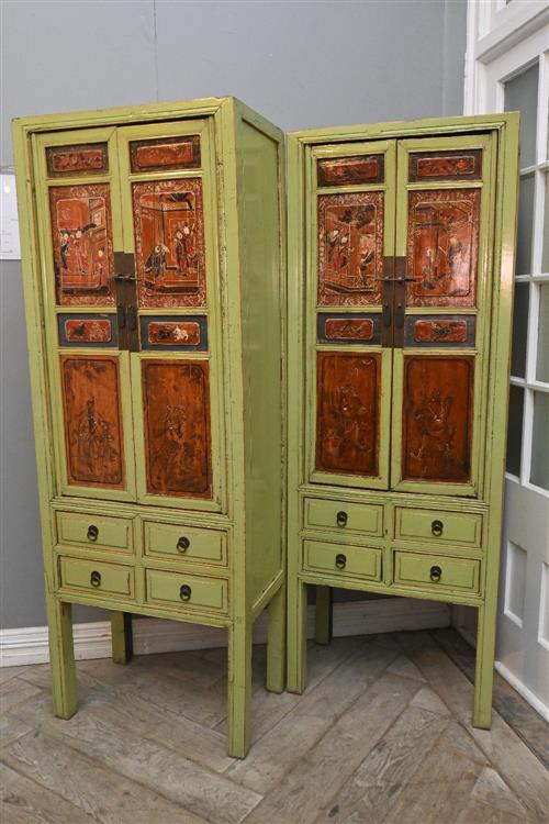 A PAIR OF CHINESE CABINETS (A/F) (178H X 66W X 40D CM) (LEONARD JOEL DELIVERY SIZE: X-LARGE)