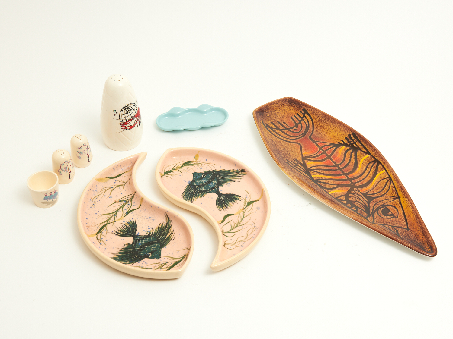 A COLLECTION OF MID CENTURY ENGLISH CERAMICS INCL. BESWICK AND POOLE L.44CM (LONGEST), LEONARD JOEL DELIVERY SIZE: MEDIUM