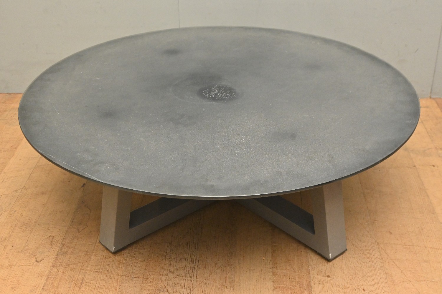 A CONTEMPORARY METAL BASED COFFEE TABLE WITH GLASS TOP BY MAMA GREEN (A/F) (40H X 120D CM) (LEONARD JOEL DELIVERY SIZE: X-LARGE)