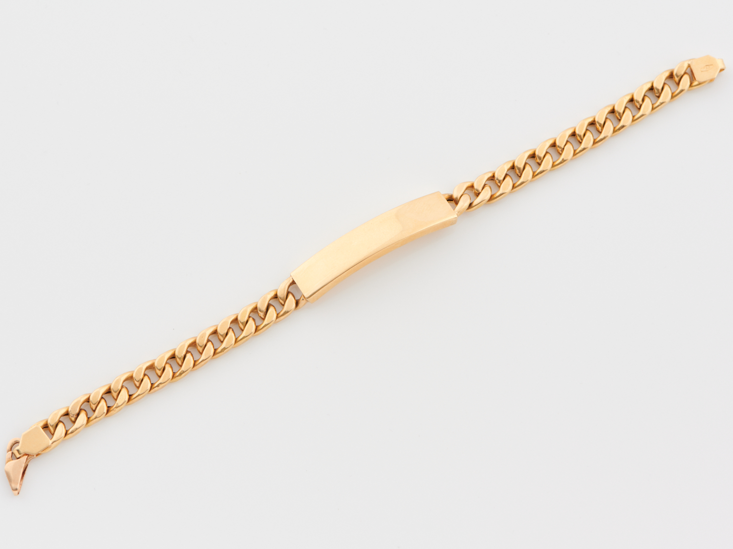AN ID BRACELET IN 18CT GOLD, 16.9GMS