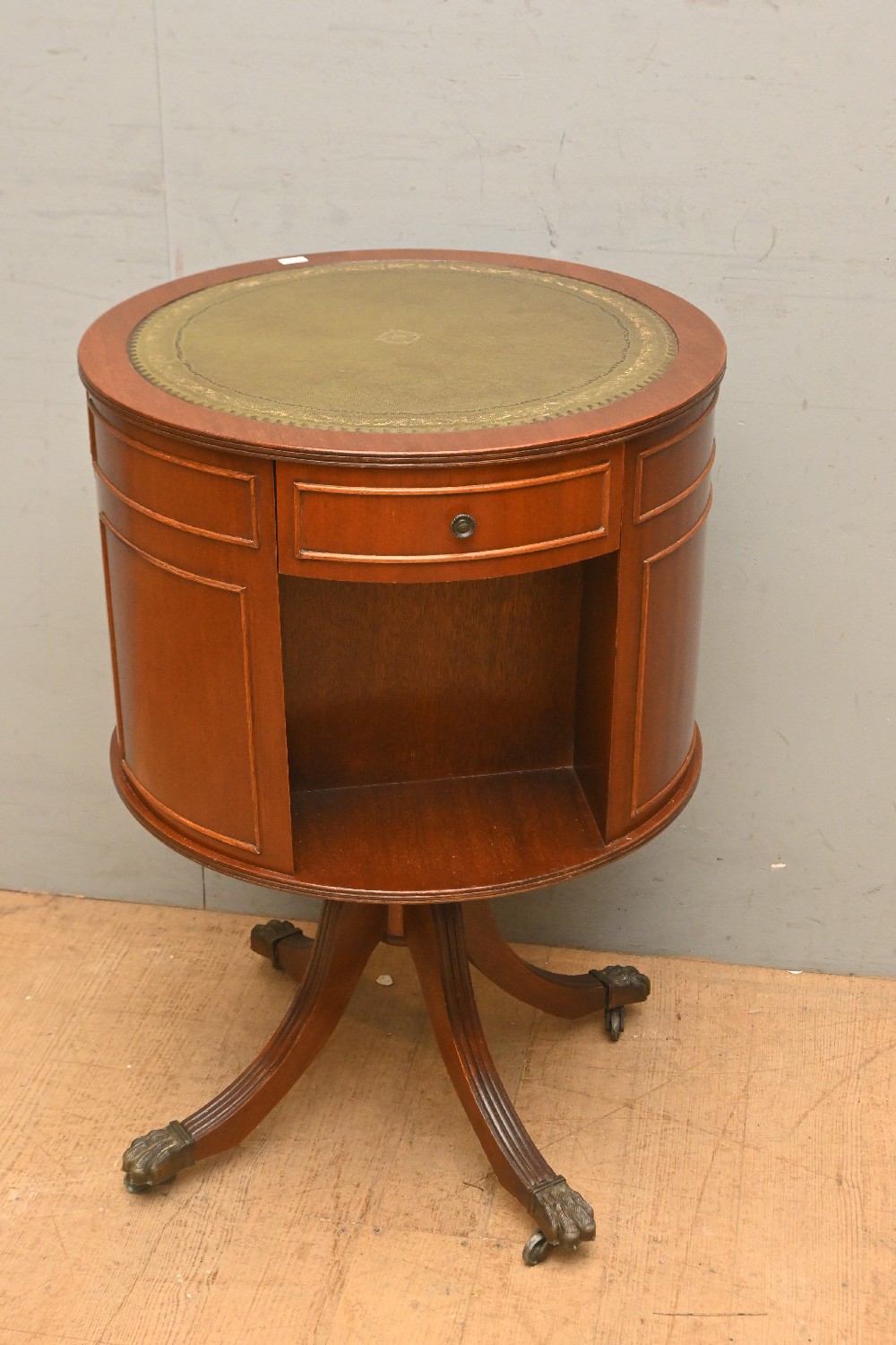 A REGENCY STYLE MAHOGANY REVOLVING BOOKSHELF WITH THREE DRAWERS (75H X 50D CM) (LEONARD JOEL DELIVERY SIZE: LARGE)
