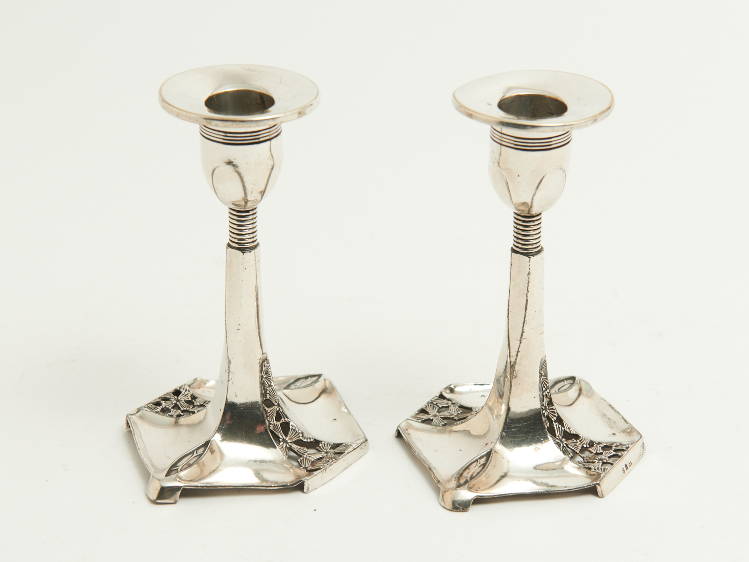 A PAIR OF 19TH CENTURY GERMAN MARKED WMF SILVER PLATE CANDLESTICKS H.13.5CM, LEONARD JOEL LOCAL DELIVERY: SMALL