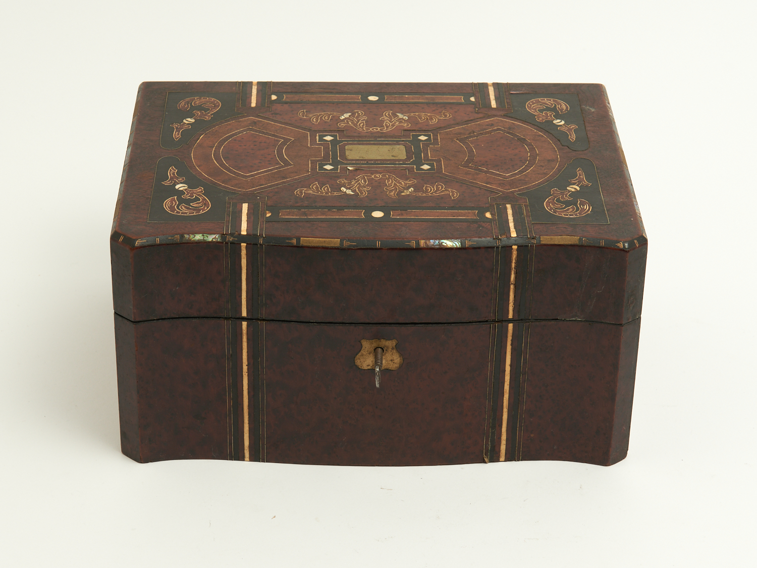 A 19TH CENTURY ENGLISH INLAID MOTHER-OF-PEARL MULTI-WOOD TWO TIER LINED JEWELLERY CASKET L.28CM, LEONARD JOEL LOCAL DELIVERY: MEDIUM