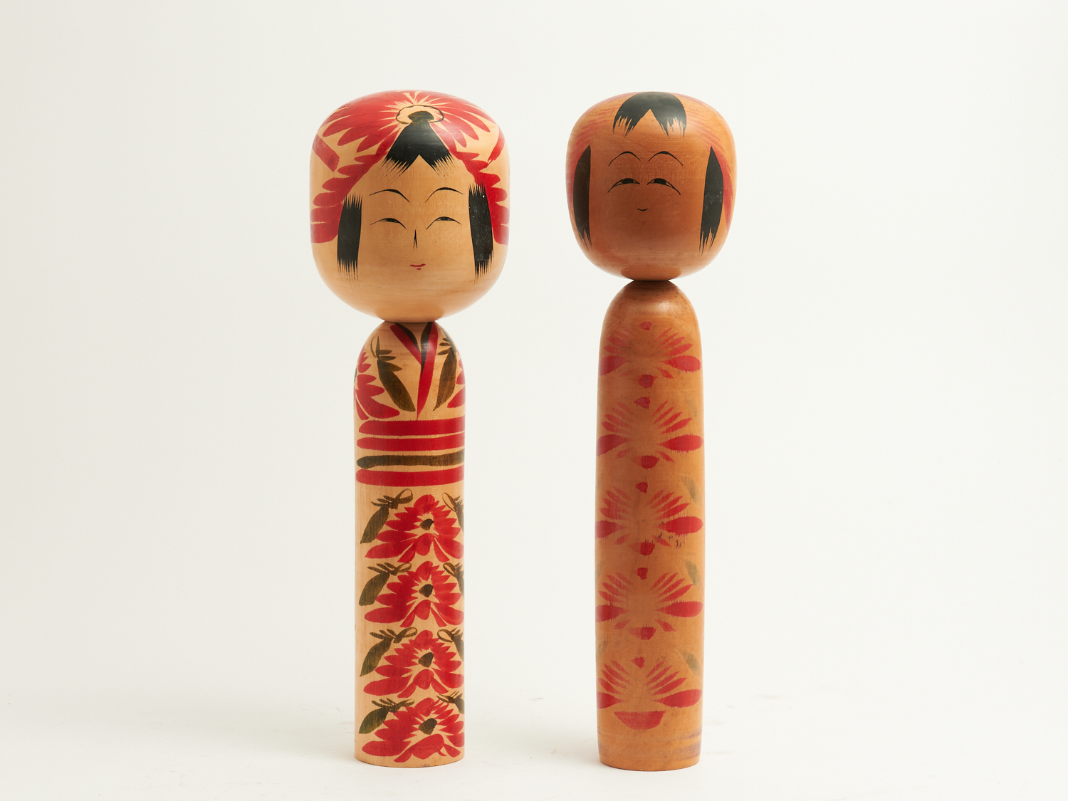 A PAIR OF LARGE HAND PAINTED KOKESHI DOLLS H.45CM, LEONARD JOEL LOCAL DELIVERY: MEDIUM