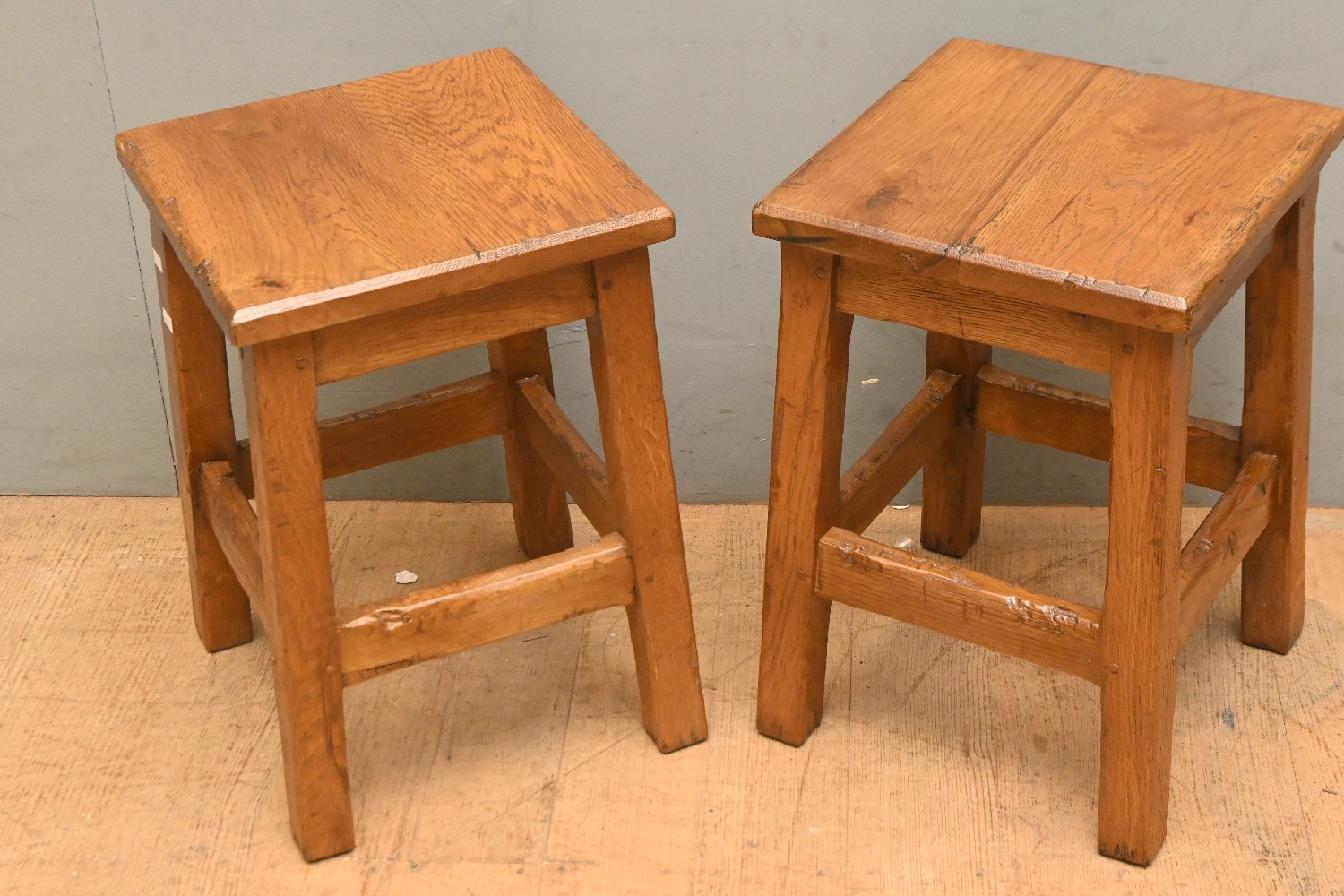 A PAIR OF FRENCH STYLE OAK JOINT STOOLS (45H X 30W X 31D CM) (LEONARD JOEL DELIVERY SIZE: LARGE)