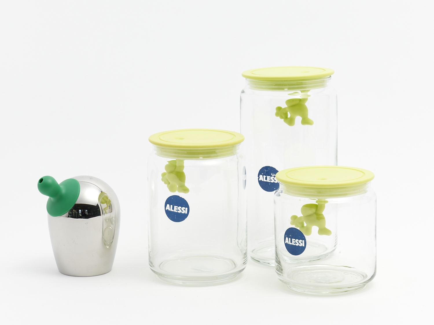 A GROUP OF ALESSI ITEMS INCL. THREE CANISTERS AND A POURER H.21CM (TALLEST), LEONARD JOEL DELIVERY SIZE: SMALL