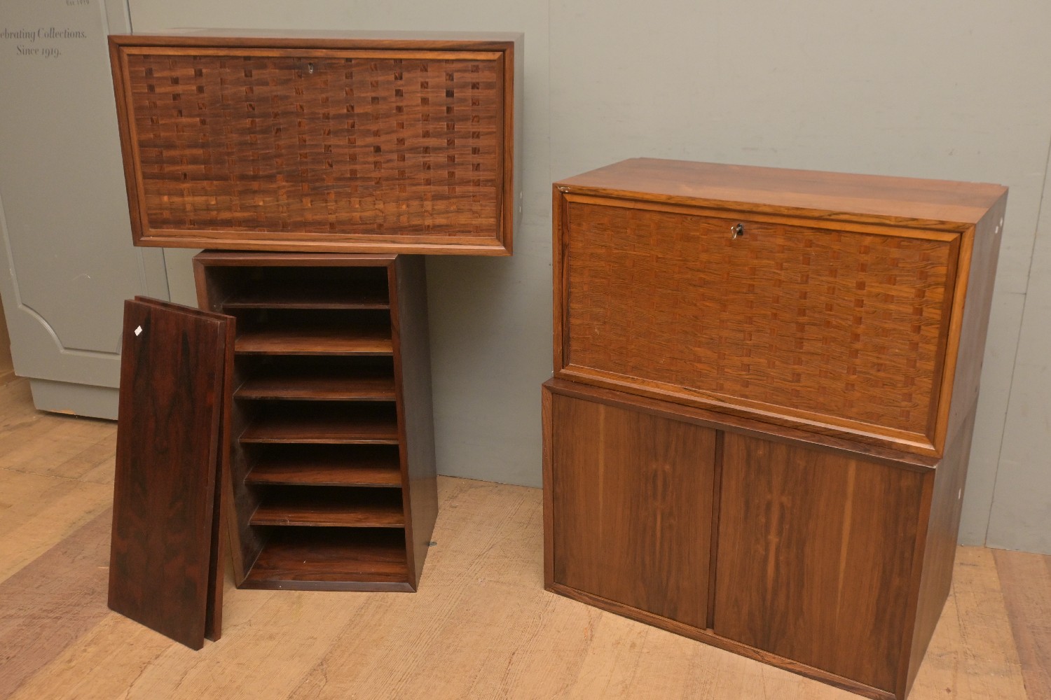 A COLLECTION OF DANISH SHELF UNIT PARTS (A/F) (52H X 80W X 45D CM) (LEONARD JOEL DELIVERY SIZE: X-LARGE)