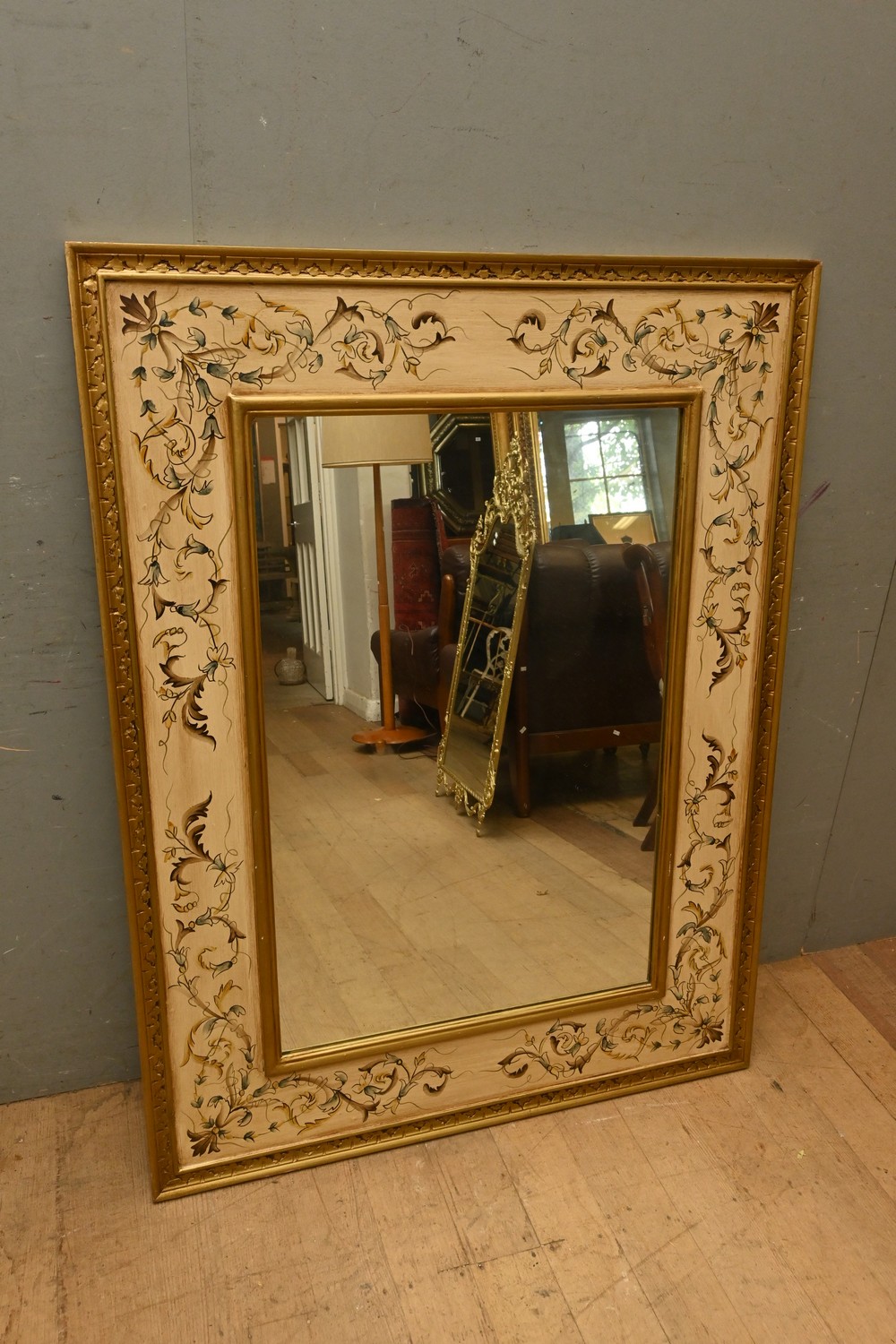 A WALL MIRROR IN AN ANTIQUE-STYLE DECORATIVELY PAINTED FRAME (128H X 98W CM) (LEONARD JOEL DELIVERY SIZE: LARGE)