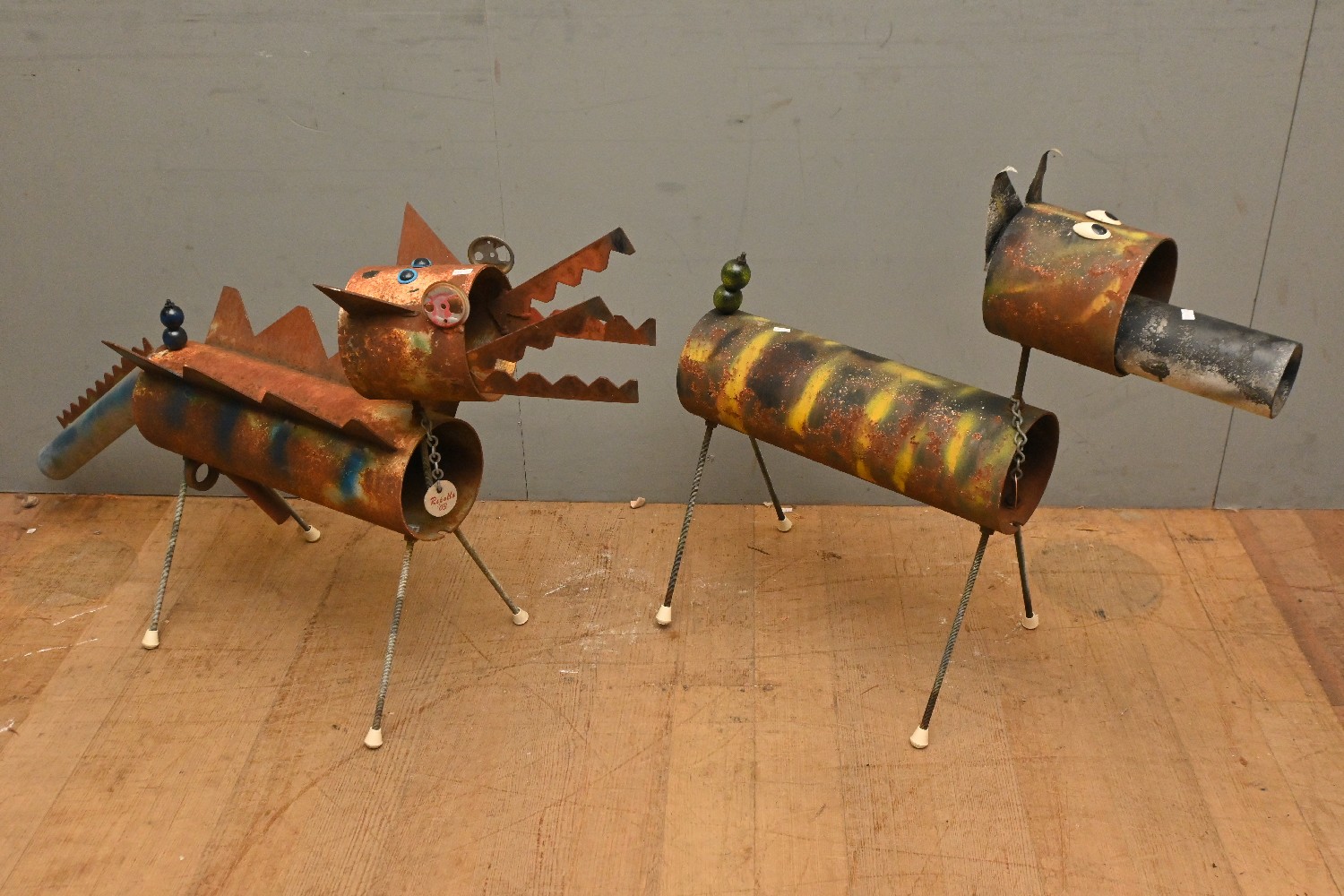 A PAIR OF HEAVY METAL GARDEN SCULPTURES (68H X 20W X 77D CM) (LEONARD JOEL DELIVERY SIZE: X-LARGE)