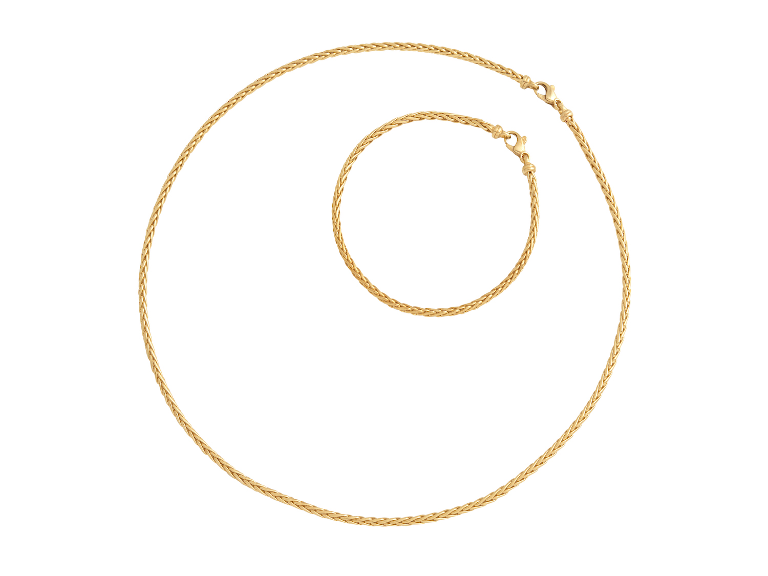 Comprising of: a wheat link necklace mounted in 14ct gold, length 450mm, a bracelet en suite, length 190mm, gross weight approximately 10 grams (2).