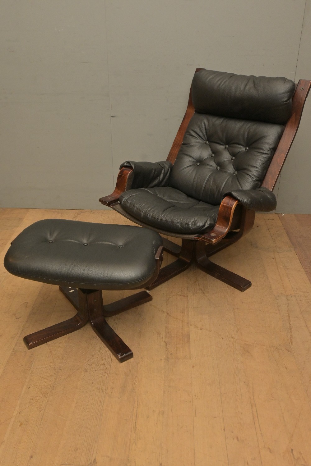 A MID CENTURY BENTWOOD SWIVEL ARMCHAIR & FOOTSTOOL (A/F) (9H X 78W X 87D CM) (LEONARD JOEL DELIVERY SIZE: X-LARGE)
