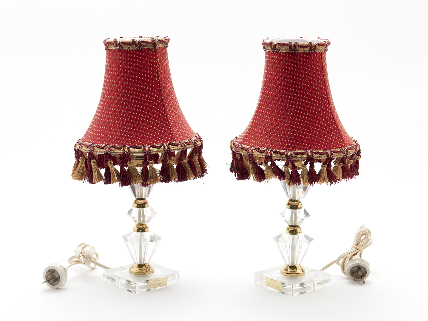 A PAIR OF SPECTRA CRYSTAL LAMPS WITH TASSELLED SHADES H.40CM, LEONARD JOEL DELIVERY SIZE: SMALL