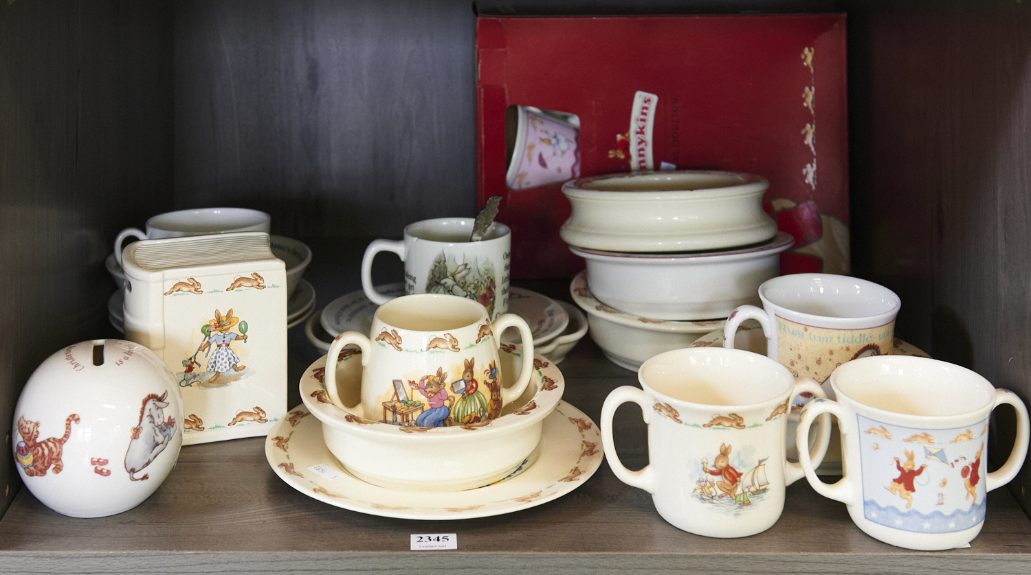 A COLLECTION OF BUNNYKINS, BEATRIX POTTER, WINNIE THE POOH, AND FALON PLAYTIME (BLINKY BILL) PORCELAIN DIA.20.5CM (LARGEST)