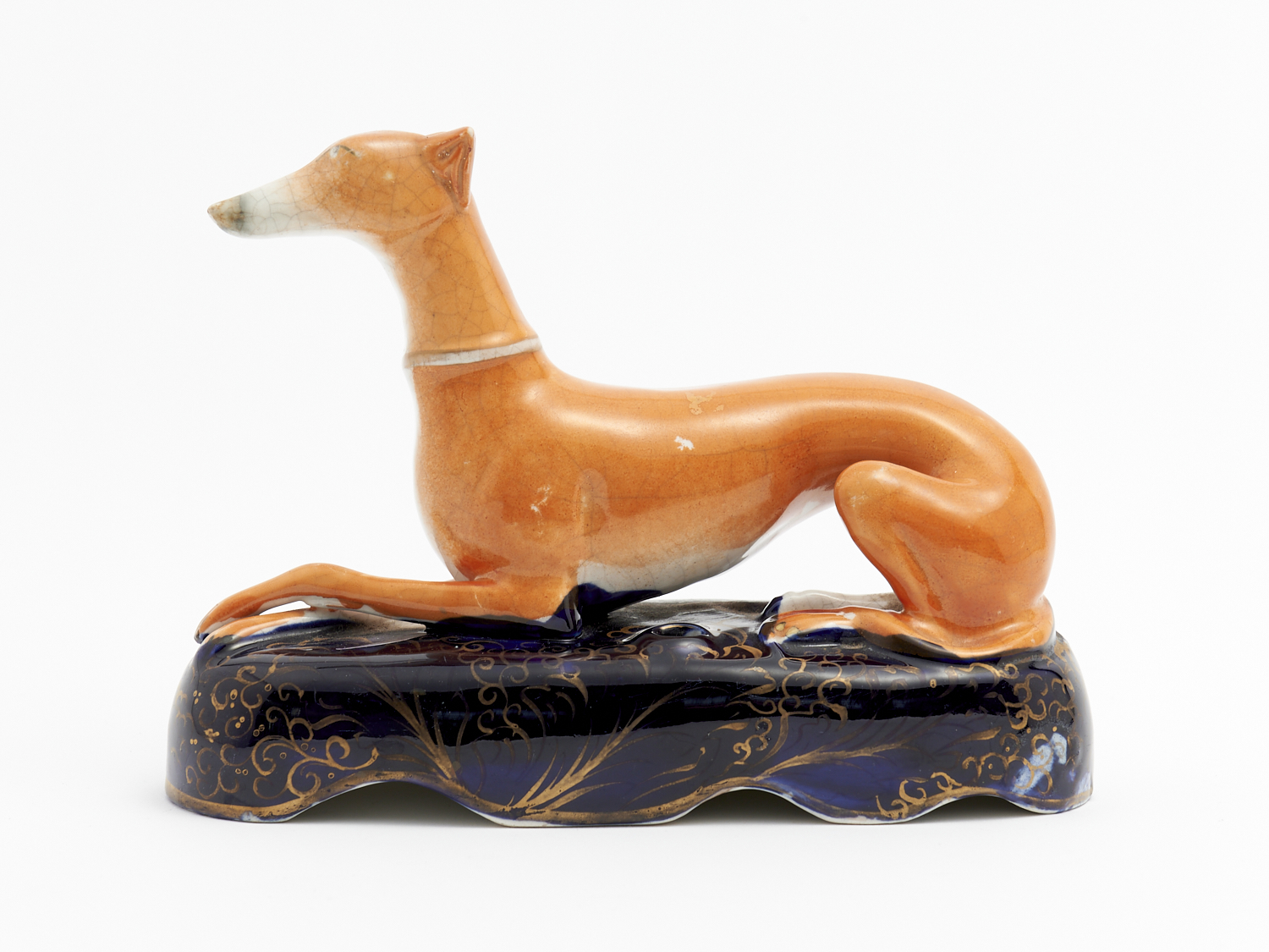 A REGENCY STAFFORDSHIRE INKWELL OF A WHIPPET L.20CM, LEONARD JOEL DELIVERY SIZE: SMALL