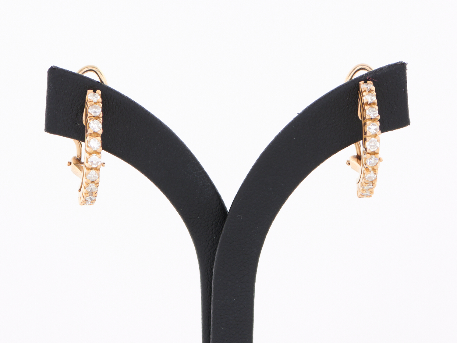 A PAIR OF DIAMOND HALF HOOP EARRINGS IN 18CT GOLD, TO POST AND CLIP FITTINGS