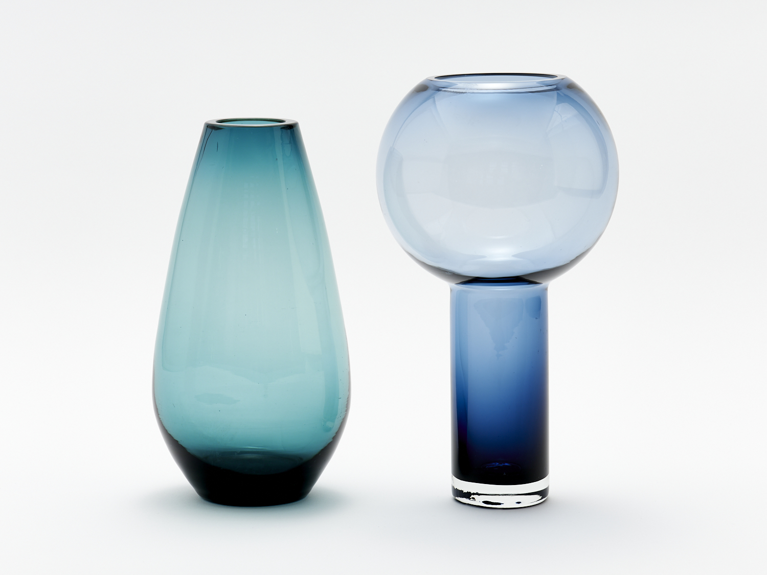 TWO BLUE AND GREEN GLASS MID-CENTURY STYLE VASES H.25CM, LEONARD JOEL DELIVERY SIZE: MEDIUM