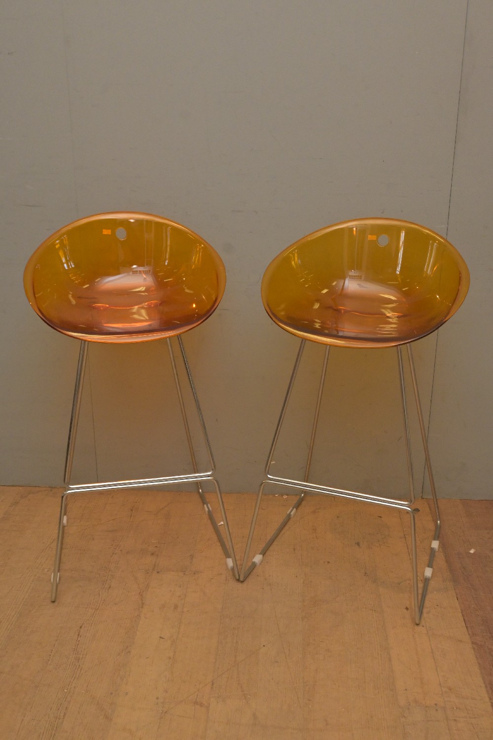 A PAIR OF ITALIAN MOLDED BARSTOOLS (97H X 52W X 52D CM) (LEONARD JOEL DELIVERY SIZE: X-LARGE)