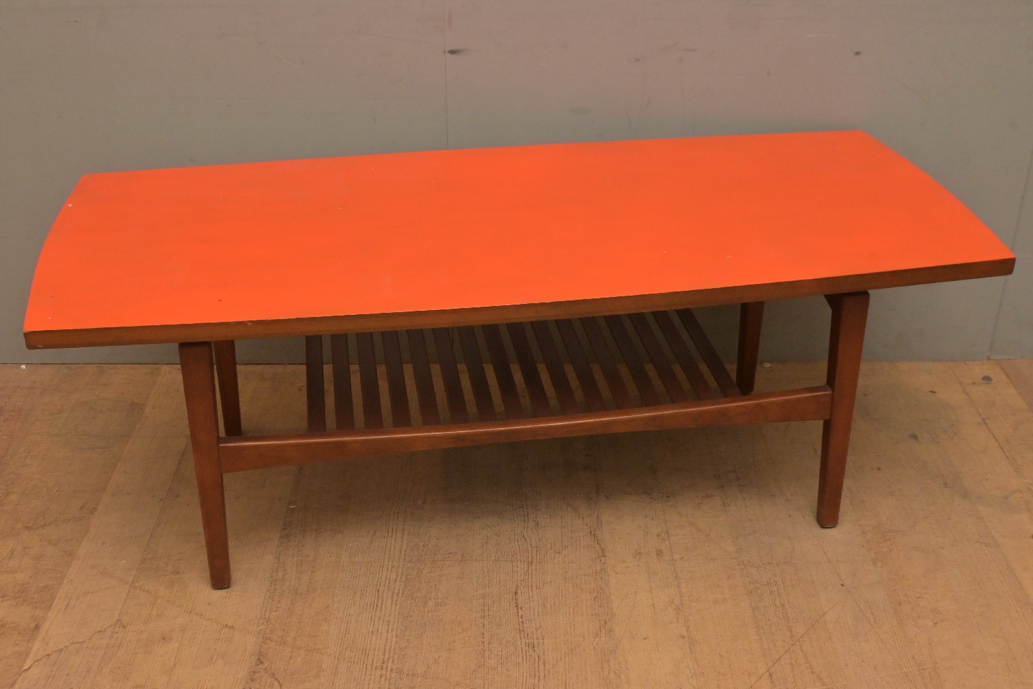 A RETRO TWO TIER TEAK PAINTED COFFEE TABLE (A/F) (51H X 143W X 62D CM) (LEONARD JOEL DELIVERY SIZE: X-LARGE)