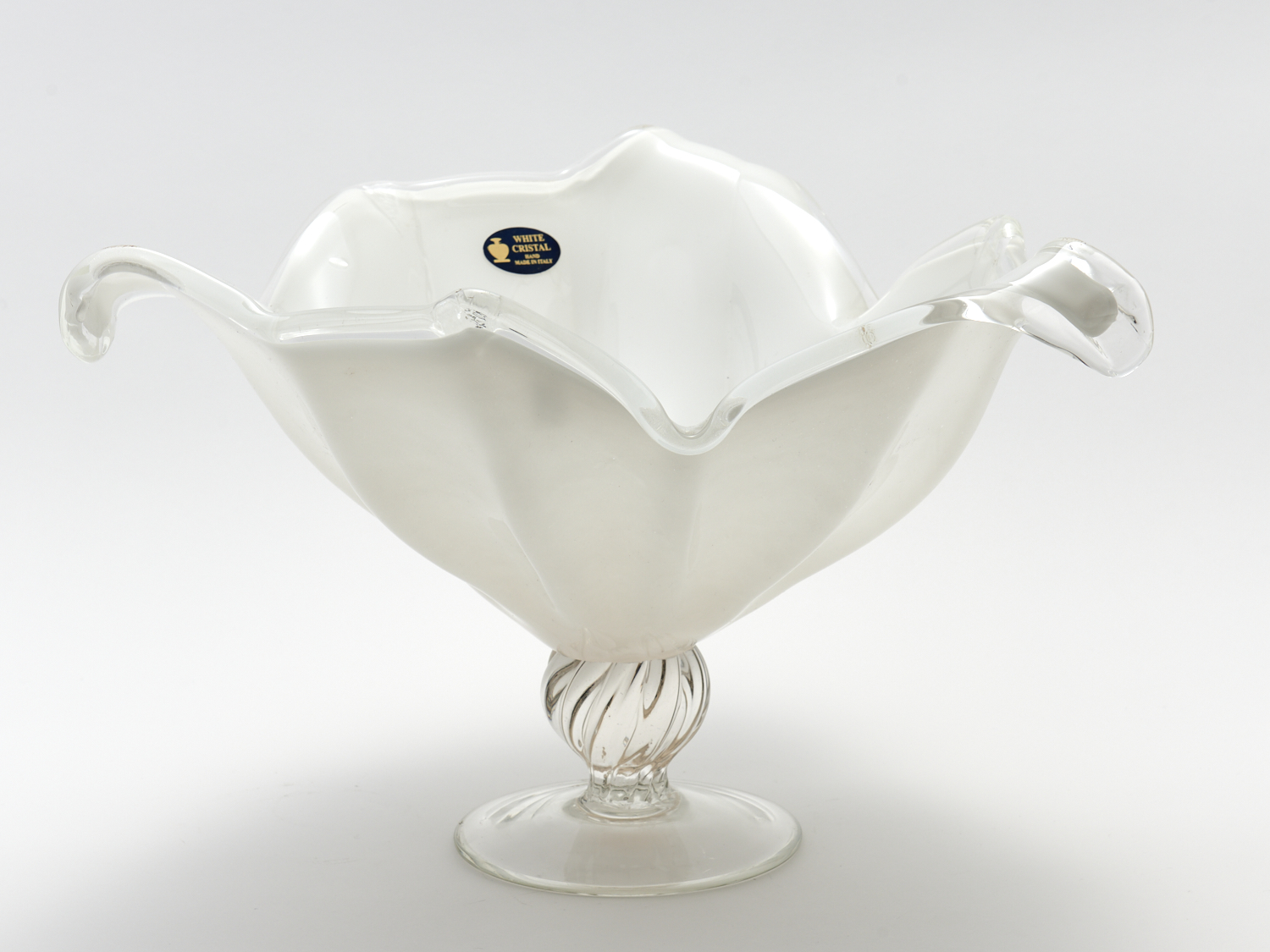 A LARGE MURANO GLASS 'WHITE CRISTAL' FOOTED CENTER BOWL H.25CM, LEONARD JOEL DELIVERY SIZE: MEDIUM