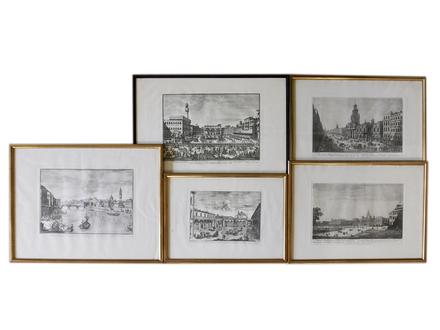A GROUP OF FIVE FRAMED 18th CENTURY ENGRAVED VIEWS OF FLORENCE AND LONDON (LATER IMPRESSIONS)