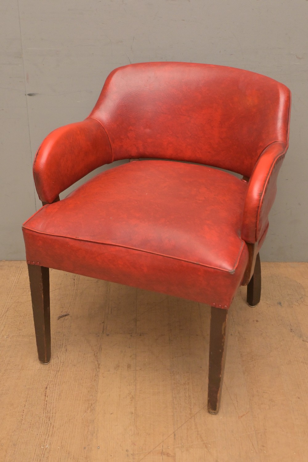 A RED LEATHER UPHOLSTERED ARMCHAIR (A/F) (77H X 65W X 71D CM) (LEONARD JOEL DELIVERY SIZE: LARGE)